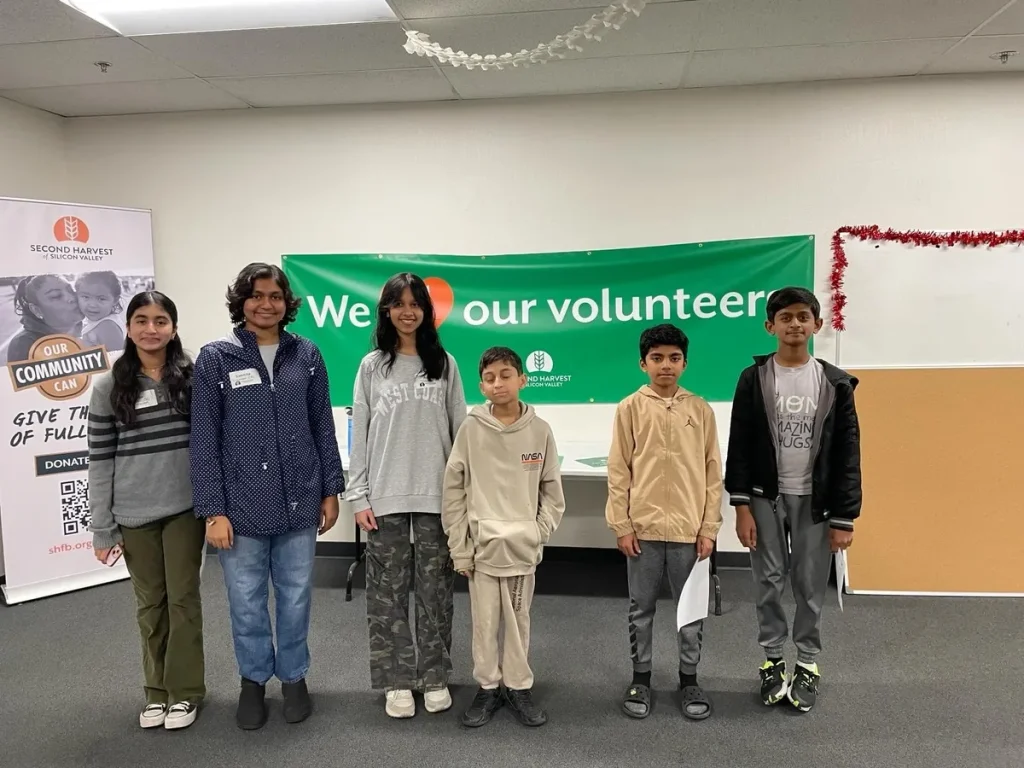 A big round of applause to our young volunteers, Pramit Angadi, Shashrik Shivayogimath, Nehal Hiremath, Ashna Munavalli, Mohak Gowdru Manjunath, Samhita Hullur, and Aditi Patil, for their incredible work at Second Harvest of Silicon Valley yesterday! Despite facing challenges, they put their hearts into their ‘Kayaka’ (work) and made a remarkable impact. Their dedication and effort are truly commendable, and we are grateful for their contributions in helping those in need. Thank you for your inspiring commitment! 🎉