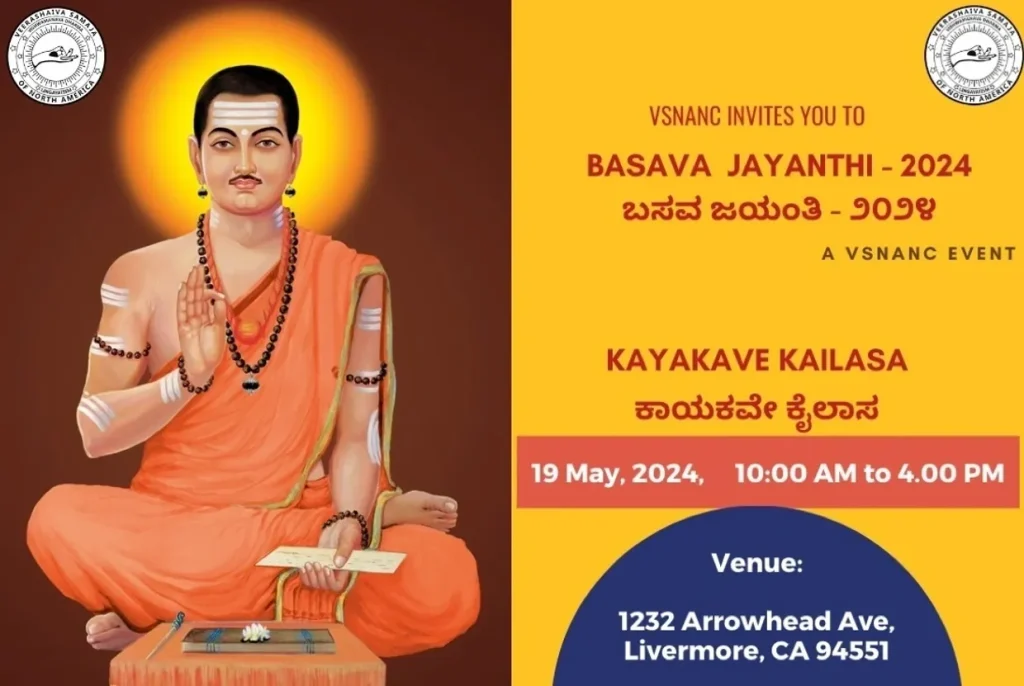 Join us for a special celebration of Basava Jayanthi, the birthday of Basavanna, a great philosopher and reformer, at the Shiva-Vishnu Temple (Akella Hall) in Livermore. Let’s gather to honor Basavanna’s teachings of kindness and equality and enjoy cultural performances and community spirit together. It will be a wonderful opportunity to connect with others, learn about Basavanna’s legacy, and celebrate our shared values of love and harmony. Don’t miss out on this enriching experience! See you there!